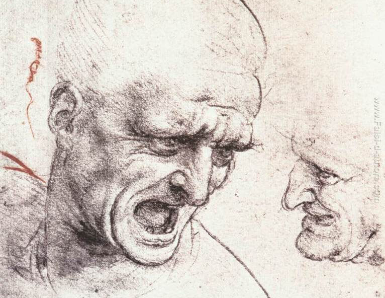 - Studi di due teste di soldati per la Battaglia di Anghiari, Palazzo Vecchio – Firenze, (42,8 x 57,7 cm)